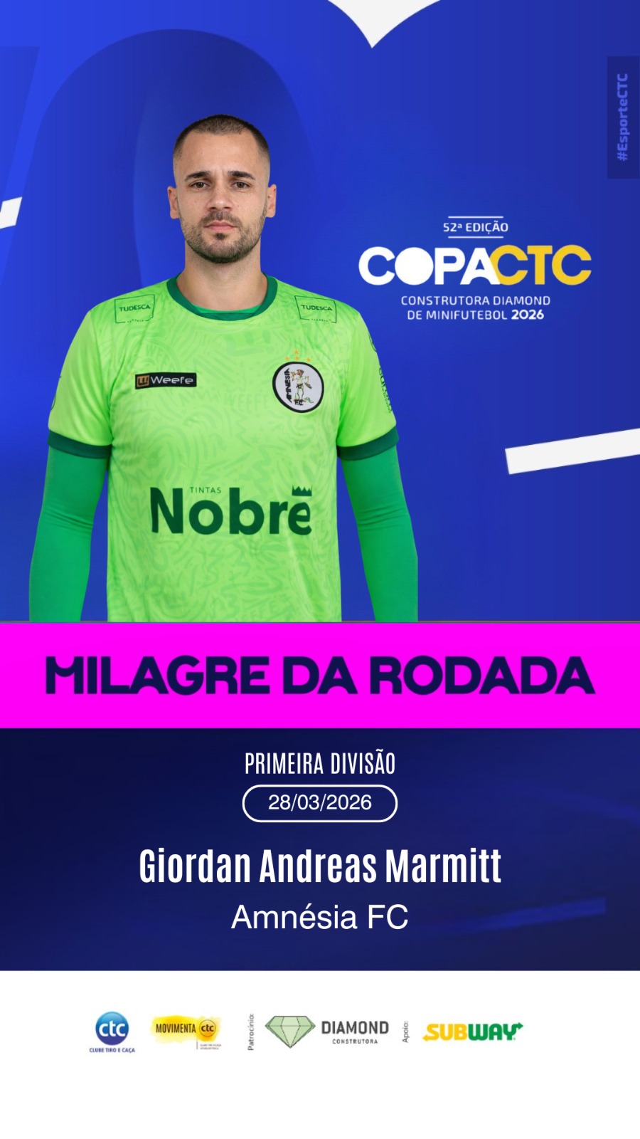 A Copa CTC segue com jogos movimentados e grande desempenho dos atletas. Confira os destaques da rodada do dia 28 de março: